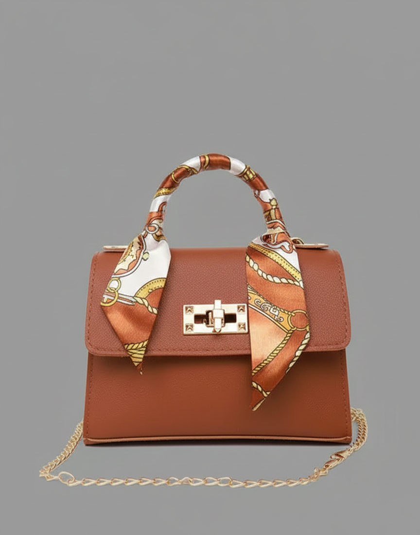 - Elegante details: luxe sluiting en sjaalaccent geven de tas een verfijnde uitstraling.