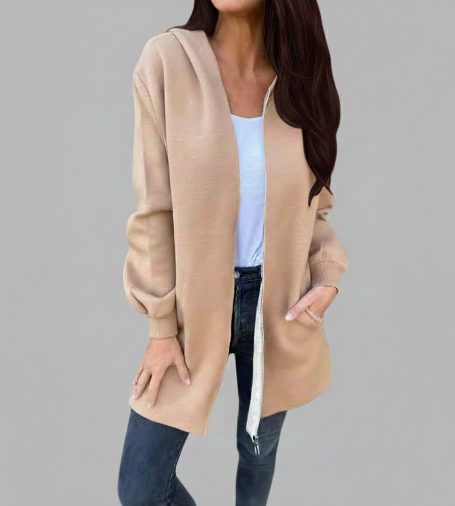 - Effen kleur met ritssluiting: Het strakke ontwerp met praktische ritssluiting zorgt voor een verzorgde uitstraling en maakt de jas eenvoudig aan en uit te trekken.