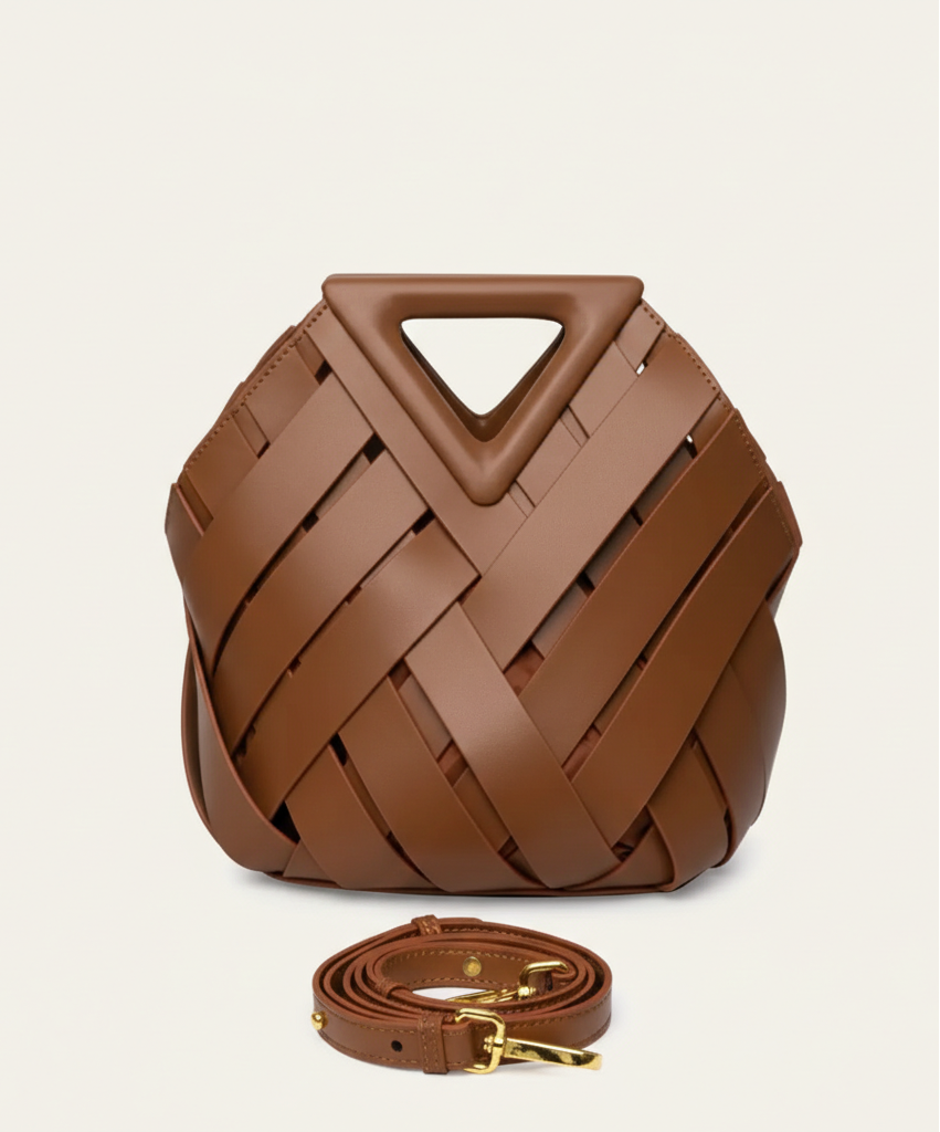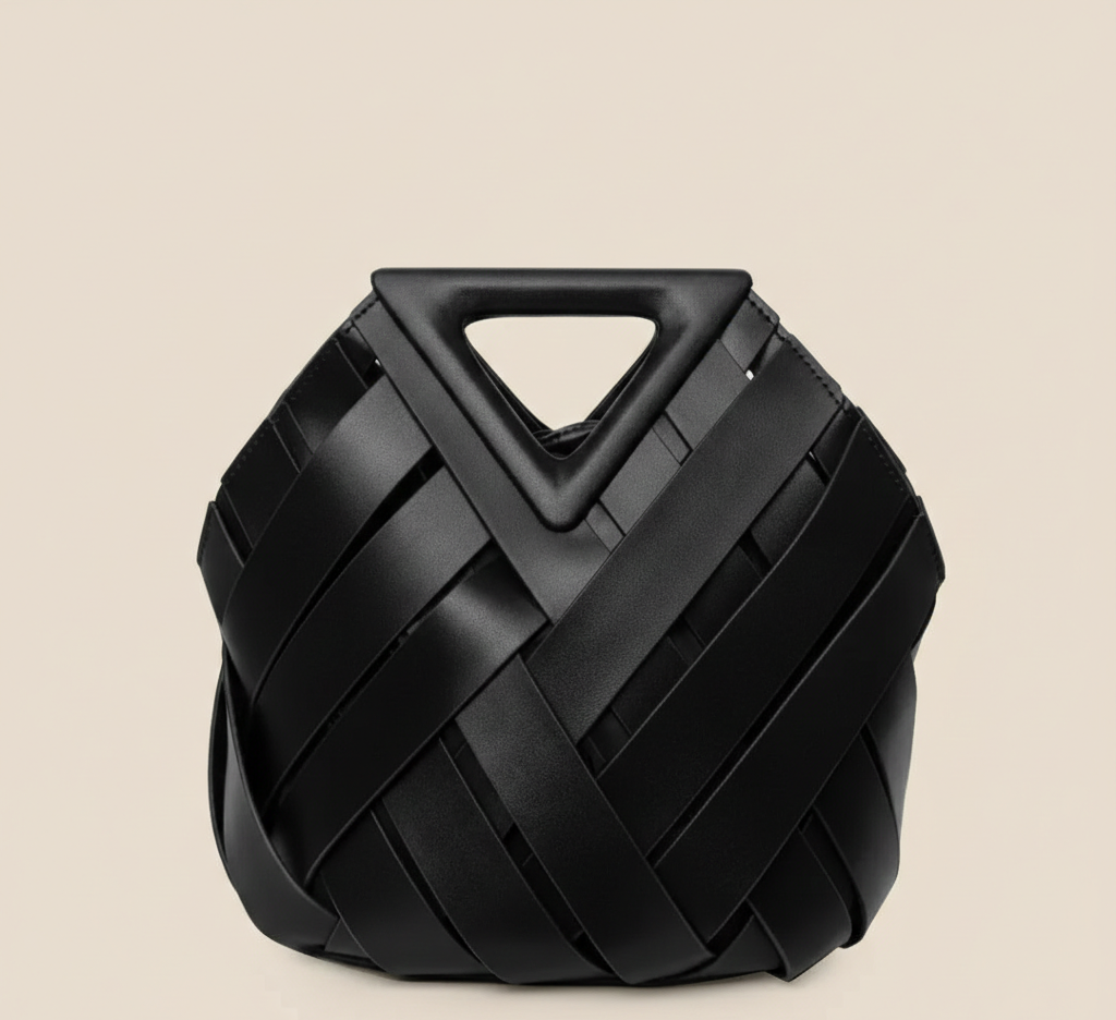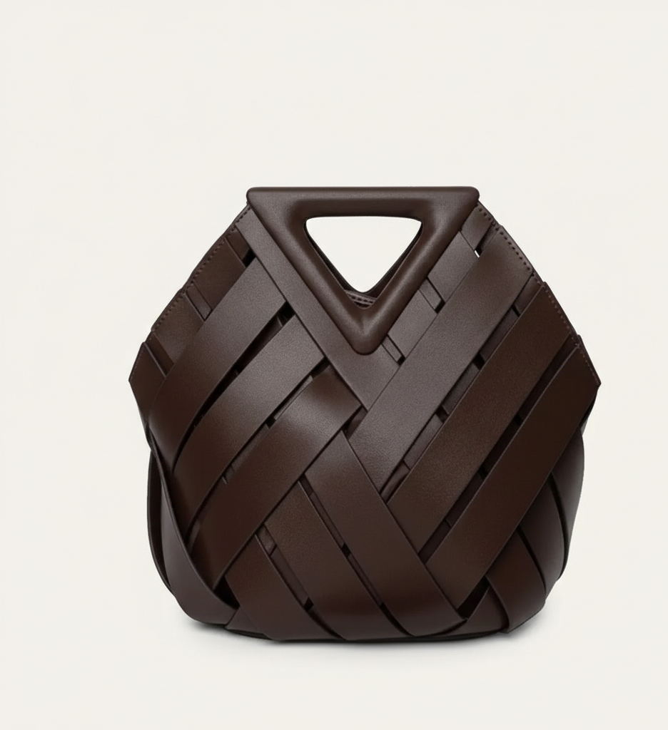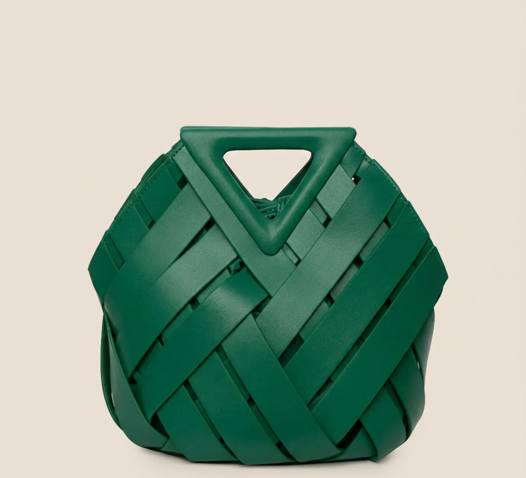 Gevlochten Dames Handtas van Vegan Leer met Driehoekige Handgreep