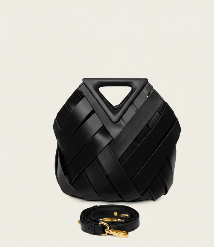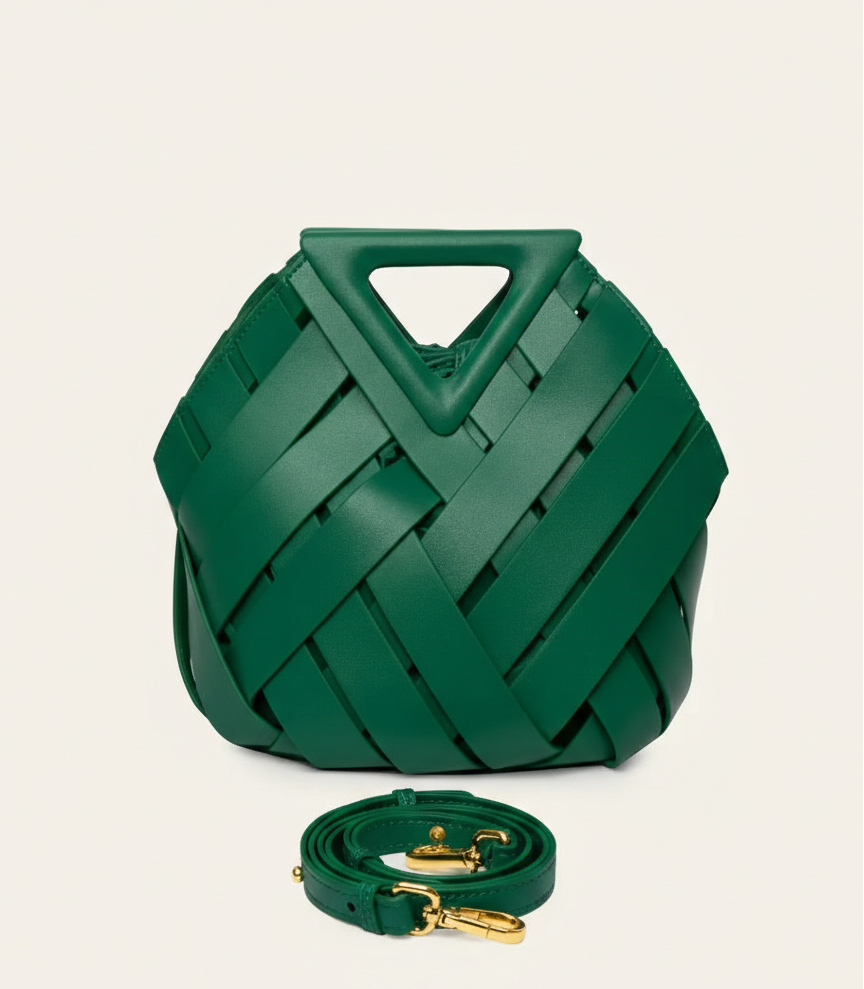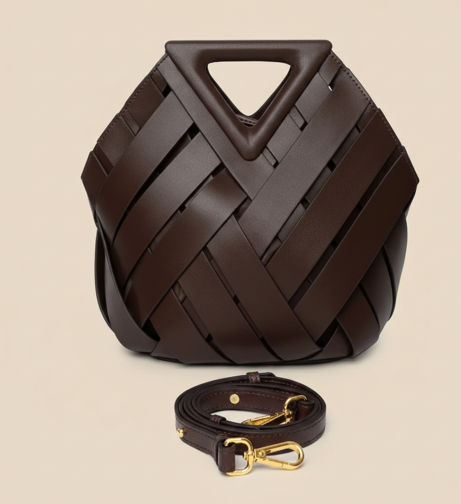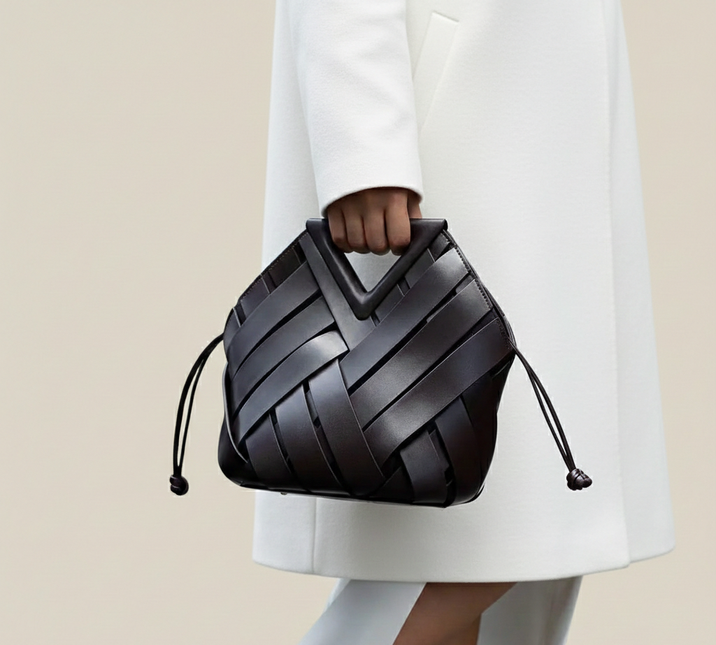 Gevlochten Dames Handtas van Vegan Leer met Driehoekige Handgreep