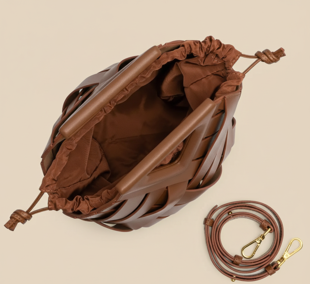 Deze gevlochten dames handtas is een stijlvol en modern accessoire dat moeiteloos luxe en functionaliteit combineert. Het unieke gevlochten design geeft de tas een opvallende uitstraling, terwijl de elegante driehoekige handgreep zorgt voor een eigentijdse en verfijnde look.