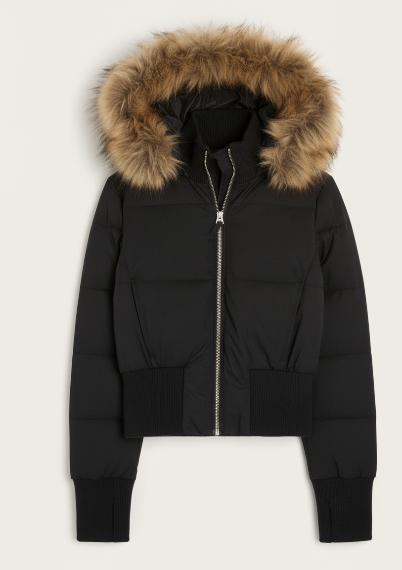 - Capuchon: Afneembaar met zachte imitatiebontkraag