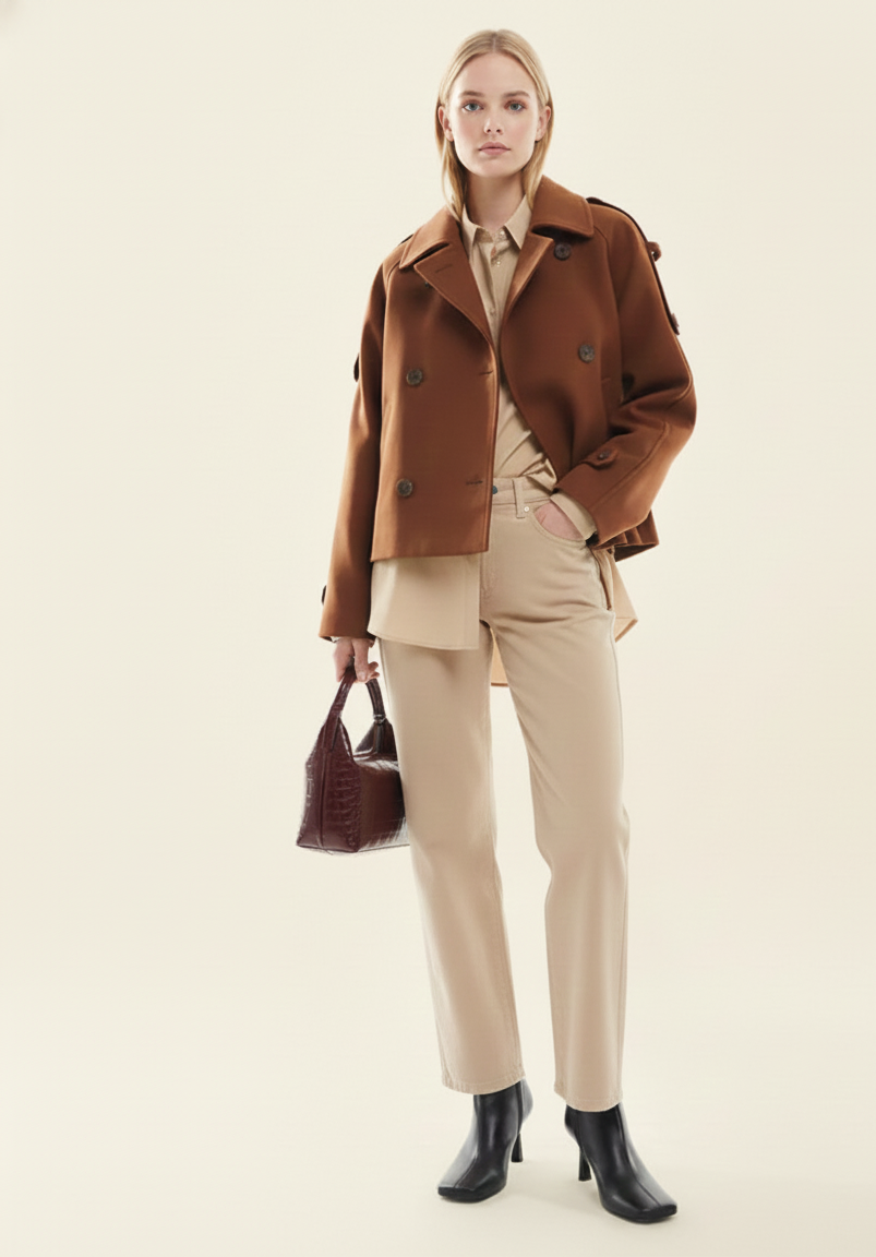 Maak kennis met jouw nieuwe favoriete korte jas dames: stijlvol, warm en direct klaar voor elke winterlook. De hoge statementkraag geeft een moderne, beschermende touch en de dubbele knoopsluiting zorgt voor een klassieke, city-chic uitstraling. Draag de jas open voor een nonchalante vibe of hoog dichtgeslagen als het frisser wordt.