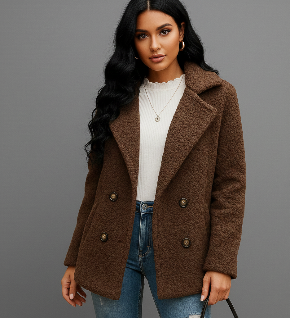 Noor Elegante Korte Damesjas met Knoopsluiting en Getailleerde Pasvorm