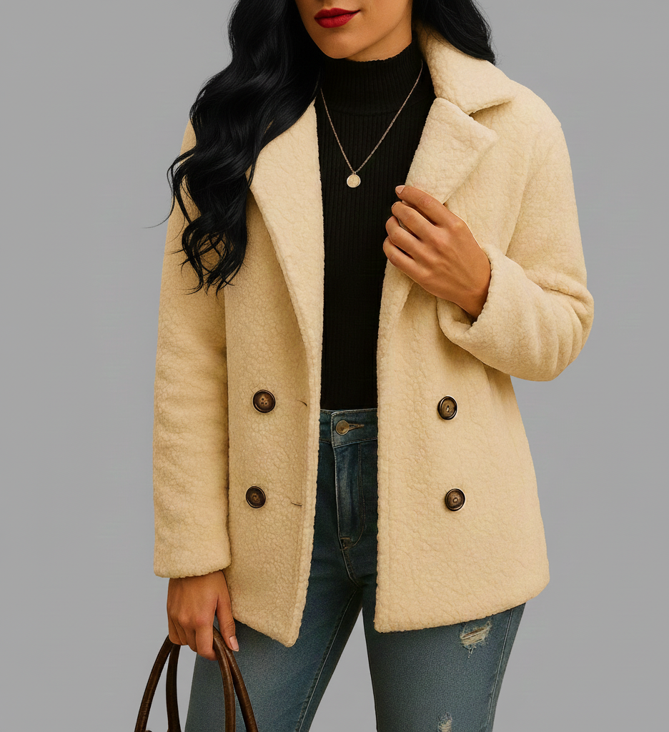- Pasvorm: Getailleerde korte jas met knoopsluiting