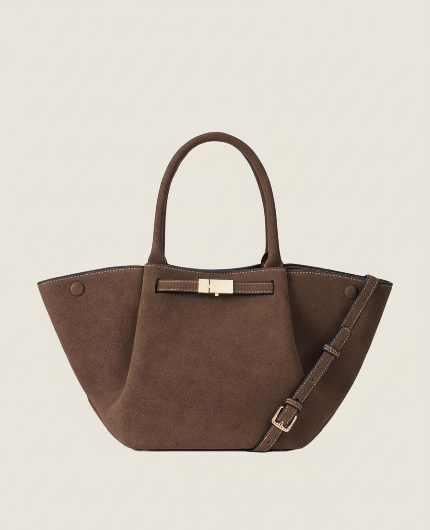 Deze suède dameshandtas vormt een perfecte balans tussen elegantie en gebruiksgemak en is een waardevolle aanvulling op iedere garderobe.