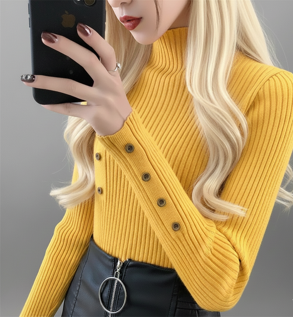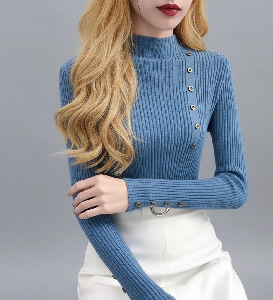 Deze comfortabele dames coltrui is ontworpen voor koude herfstdagen en winterse momenten. De zachte stof voelt aangenaam aan op de huid en biedt langdurige warmte zonder te knellen. Dankzij de elastische structuur sluit de trui mooi aan op het lichaam en behoudt hij zijn vorm.